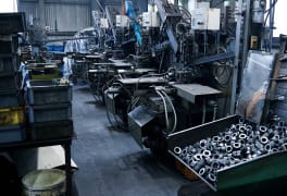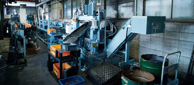 当工場では、長年積み上げてきた研究及び独自の加工技術をNC旋盤に取り入れることにより、特殊な形状物、ミクロン単位の精密部品から削り代の多い重旋削まで、あらゆる物を加工できる技術を保持しています。6旋盤ラインのうち、半数が単能機ラインで単品から量産まで対応可能。鉄はもちろん、特に難加工材、ステンレス、アルミなどを得意としています。製品の加工はもとより、検査体制においても力を入れ、形状測定器の導入など、お客様のニーズにあった製品造りを常に心がけています。