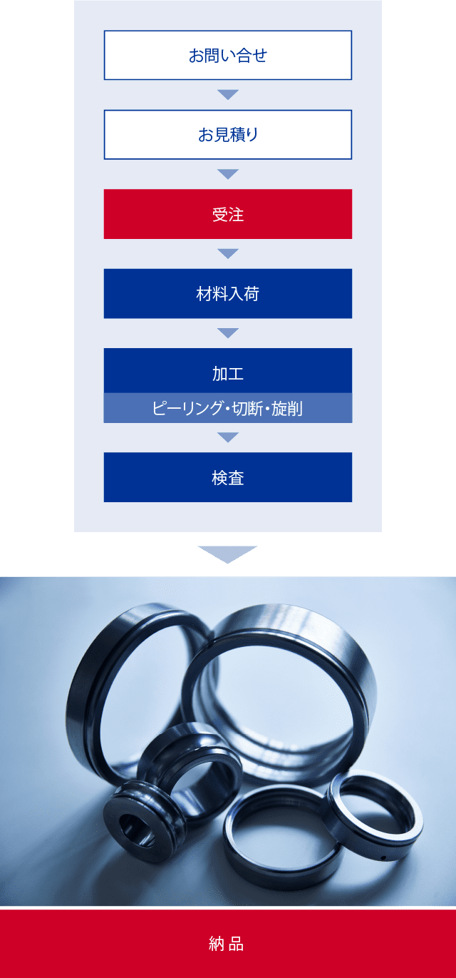ピーリングのみ、切断のみの注文や短納期にも柔軟に対応いたします。